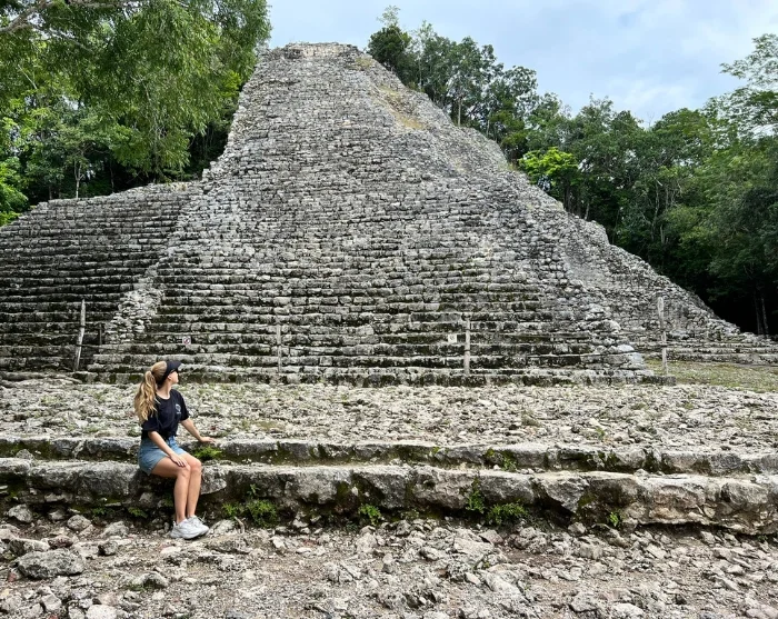 Første stop er Cobá, som engang var en af regionens største og mest betydningsfulde mayabyer. Cobá-ruinerne ligger gemt inde i junglen, hvilket giver stedet en eventyrlig og næsten hemmelighedsfuld stemning – så du kan godt finde din indre Indiana Jones frem. Ruinerne ligger spredt ud over et stort område, som er forbundet af gamle stisystemer kaldet sacbé. Du bliver kørt rundt i en cykeltaxa ad de snoede stier gennem den frodige vegetation og oplever de mystiske templer og den imponerende Nohoch Mul-pyramide, der med sine ca. 42 meter er den højeste pyramide på Yucatán halvøen, og som majestætisk rejser sig over trætoppene.