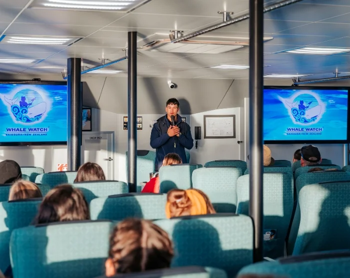 Når du har parkeret din bil og checke ind hos Whale Watch Kaikoura (min. 30 minutter før afgang), bliver du kørt i bus ned til South Bay Marina (ca. 10 min.), hvor du går ombord på en moderne katamaran, som er specialbygget til hvalsafari. Her står kaptajn og besætning klar til at give dig de bedste muligheder for at se hvaler og andre havdyr og -fugle.