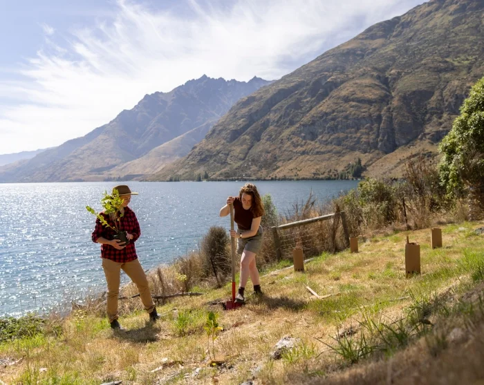 Walter Peak High Country Farm ligger i idylliske omgivelser ved foden af det 1.800 meter høje bjerg Walter Peak. Ved ankomst bliver du budt velkommen af farmens dedikerede hortonom (en slags haveekspert), som tager dig med på en guidet gåtur gennem de frodige haver, frugtlunde og bistader. Undervejs får du et fascinerende indblik i områdets historie og økosystem – herunder arbejdet med at fjerne invasive træer og genskabe det oprindelige landskab ved at plante hjemmehørende arter. Du får selv mulighed for at vælge og plante et lille newzealandsk træ eller en busk i farmens planteskole og dermed bidrage til at genskabe naturlige habitater, der bl.a. kan tiltrække fuglelivet tilbage til området.