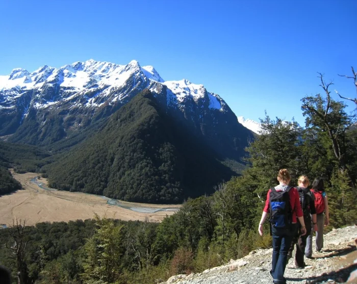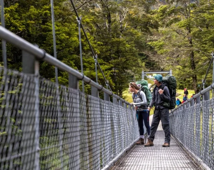 Du starter med at krydse en hængebro over Routeburn-floden og fortsætter ind i en spektakulær bøgeskov. Stien er jævn og flad, så du har gode muligheder for at holde øje med fugle, der flyver gennem trækronerne. Måske er du heldig at få øje på New Zealands mindste fugl, klatresmutte (Acanthisitta chloris), eller den sjældne gulhovedet mohua (Mohoua ochrocephala), som er endemisk for New Zealand.