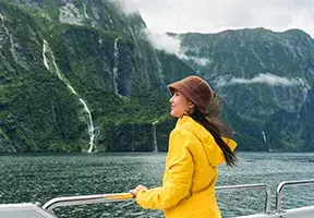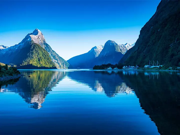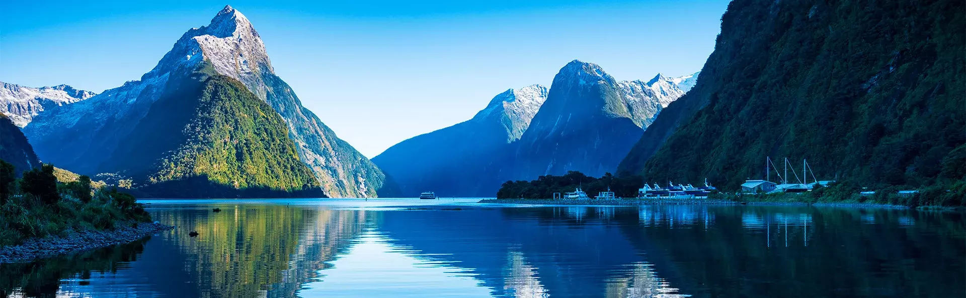 Milford Sound i Fiordland Nationalpark er blandt New Zealands største seværdigheder og måske den smukkeste naturoplevelse, du kan få her i landet. Det er svært ikke at blive imponeret efter et besøg i den smukke fjord med de lodrette klippevægge, brusende vandfald og tætte regnskov.