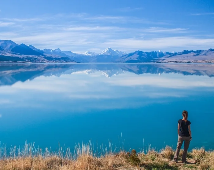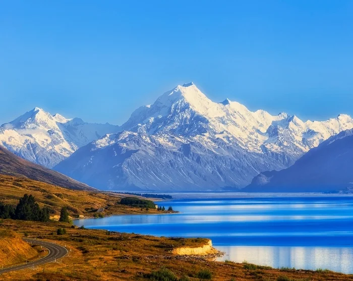 Herfra fortsætter du langs Lake Pukaki (Pūkahaki), hvor synet af New Zealands højeste bjerg, Mount Cook (Aoraki) med sine 3.724 meter, gradvist toner frem i horisonten.