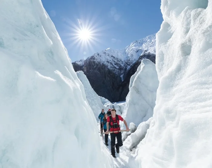 Hvis du vil endnu tættere på, kan du tage med på en guidet vandretur i dalen, eller du kan vælge en helikoptertur med landing på selve gletsjeren. For en mere aktiv oplevelse er en heli-hike et populært valg, hvor helikopterflyvningen kombineres med en vandretur på isen i selskab med en dygtig guide.