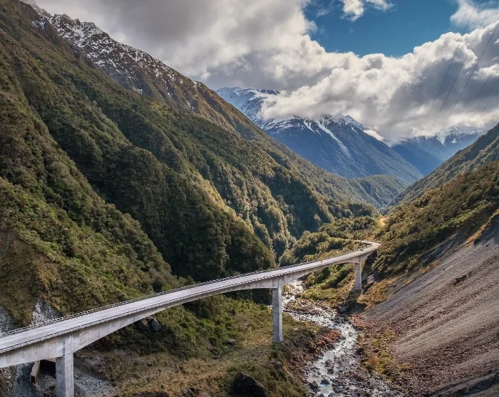 Herfra fortsætter du mod Kumara Junction og drejer ind gennem Arthur’s Pass Nationalpark. Landskabet ændrer sig dramatisk, når regnskoven viger for alpine buske og stejle bjerge. Ved Otira Viaduct Lookout har du en fantastisk udsigt over den spektakulære viadukt, der snor sig gennem dalen. Hold øje med keaen, verdens eneste alpine papegøje, som ofte ses her.