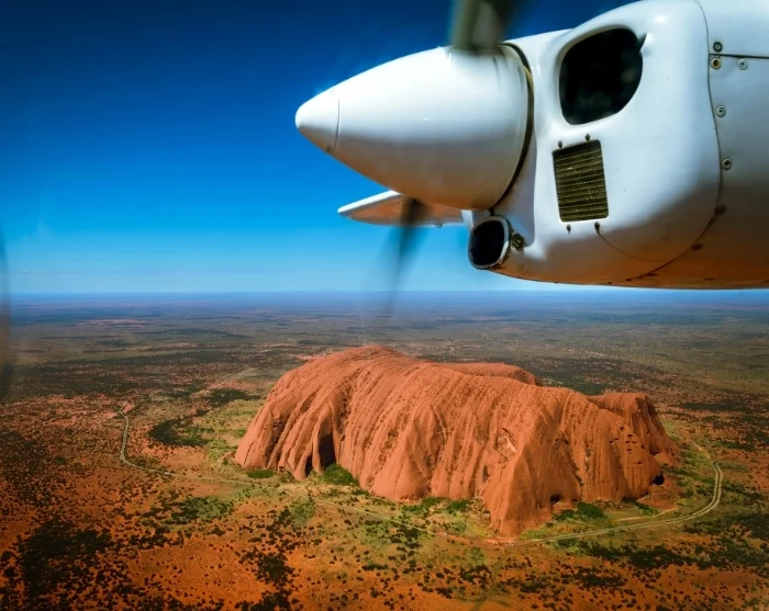 Fra hotellet i Sydney bliver du kørt til lufthavnen, hvorfra du flyver ind til Outbacken – Australiens røde hjerte. Ved ankomsten kører en gratis shuttlebus (booking ikke nødvendig) ind til den lille by Yulara, som fungerer som turistcentrum i området.