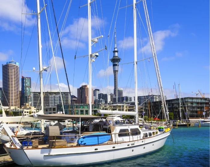 Byrundturens sidste stop er ved Westhaven Marina, som er en af den sydlige halvkugles største lystbådehavne, hvor Aucklands skyline og Harbour Bridge danner en flot baggrund til de mange bådmaster.