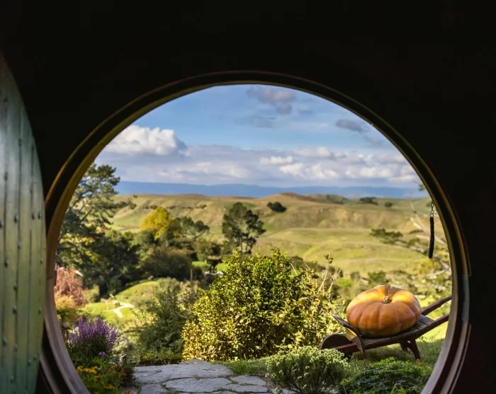 Fra Auckland kører du med minibus og lokal guide mod Rotorua gennem frodige landskaber til Waikato-regionen, som er et af landets største landbrugsområder. Her ligger Hobbiton Movie Set, som blev brugt i filmene Ringenes Herre og Hobbitten.