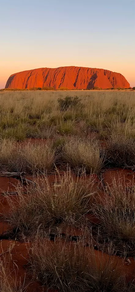 Du skal tidligt op i dag. I går oplevede du solnedgangen, og nu skal du se solen stå op over Uluru. Det er en uforglemmelig oplevelse, når klippens konturer langsomt toner frem i det første lys.
