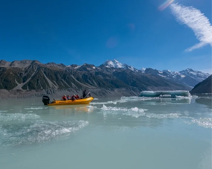 Inden du forlader Aoraki/Mount Cook Nationalpark kan vi anbefale at du hjemmefra tilkøber en sejltur på Tasman-søen. Her kommer du helt tæt på små isbjerge og selveste Tasman-gletsjeren, New Zealands største gletsjer. Det er også muligt at opleve det betagende område fra oven fra en helikopter, hvis vejret tillader det. Det anbefaler vi at bestille lokalt så snart du ankommer til området, for at sikre dig en plads, hvis det er en oplevelse du ikke vil være foruden.