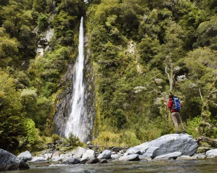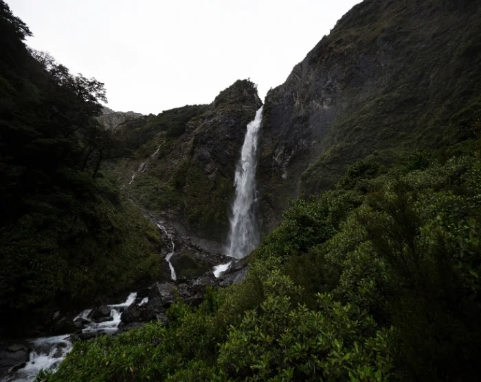 Du kan også tage et hurtigt fotostop ved Thunder Creek Falls, et 28 meter højt vandfald, der er omgivet af frodig skov, før du kører videre gennem det naturskønne Haastpas og ud til vestkysten, hvor landskabet ændrer karakter og bliver vildere og grønnere.