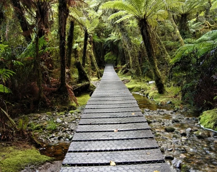 Du forlader Franz Josef og kører nordpå gennem West Coast-regionen, hvor vejen snor sig gennem regnskove, over floder og forbi små landsbyer. Et oplagt stop undervejs er i Hokitika, en lille by kendt for sine kunsthåndværkere og smykkekunst lavet af den grønne sten pounamu (jade). Her kan du også besøge stranden og tage en pause med udsigt over det vilde Tasmanhav.