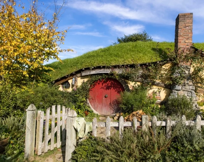 Fra Auckland går turen med minibus og en lokal guide mod Rotorua. Du kører sydpå gennem frodige landskaber til Waikato-regionen, som er et af landets store landbrugsområder. Her midt i det grønne bølgende terræn ligger Hobbiton Movie Set, det autentiske filmset fra Ringenes Herre og Hobbitten.