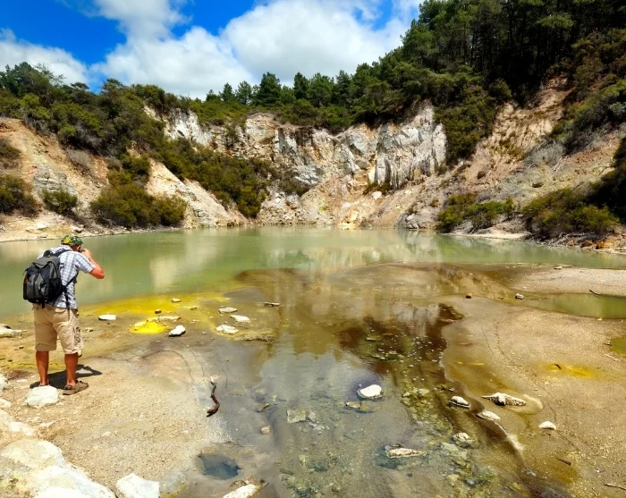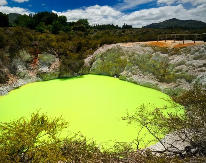 Vil du opleve Rotoruas geotermiske side på nært hold, kan du tage med til Hell’s Gate, hvor du får mulighed for at se boblende kilder og varme dampe samt prøve den berømte mudderspa.