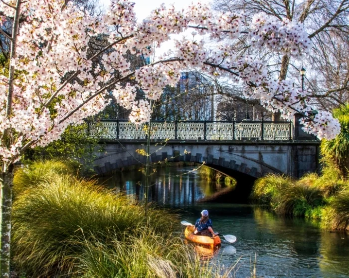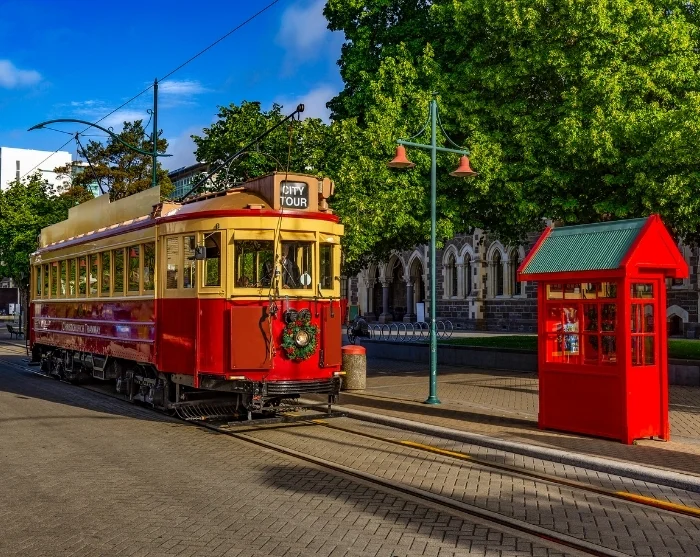 Start eventuelt med en gåtur i det centrale Christchurch, hvor historisk charme møder moderne arkitektur. Tag med den klassiske, historiske sporvogn, der kører i ring gennem byens centrum og stopper ved flere af de største seværdigheder. Du kan også opleve byen fra vandsiden på en romantisk sejltur i en gondolinspireret båd, der stages stille frem på Avon-floden.