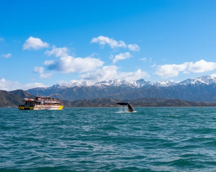 Længere oppe ad kysten ligger Kaikoura, som er særligt berømt for sine hvalsafarier. Her kan du være heldig at opleve kaskelothvaler i deres naturlige omgivelser.