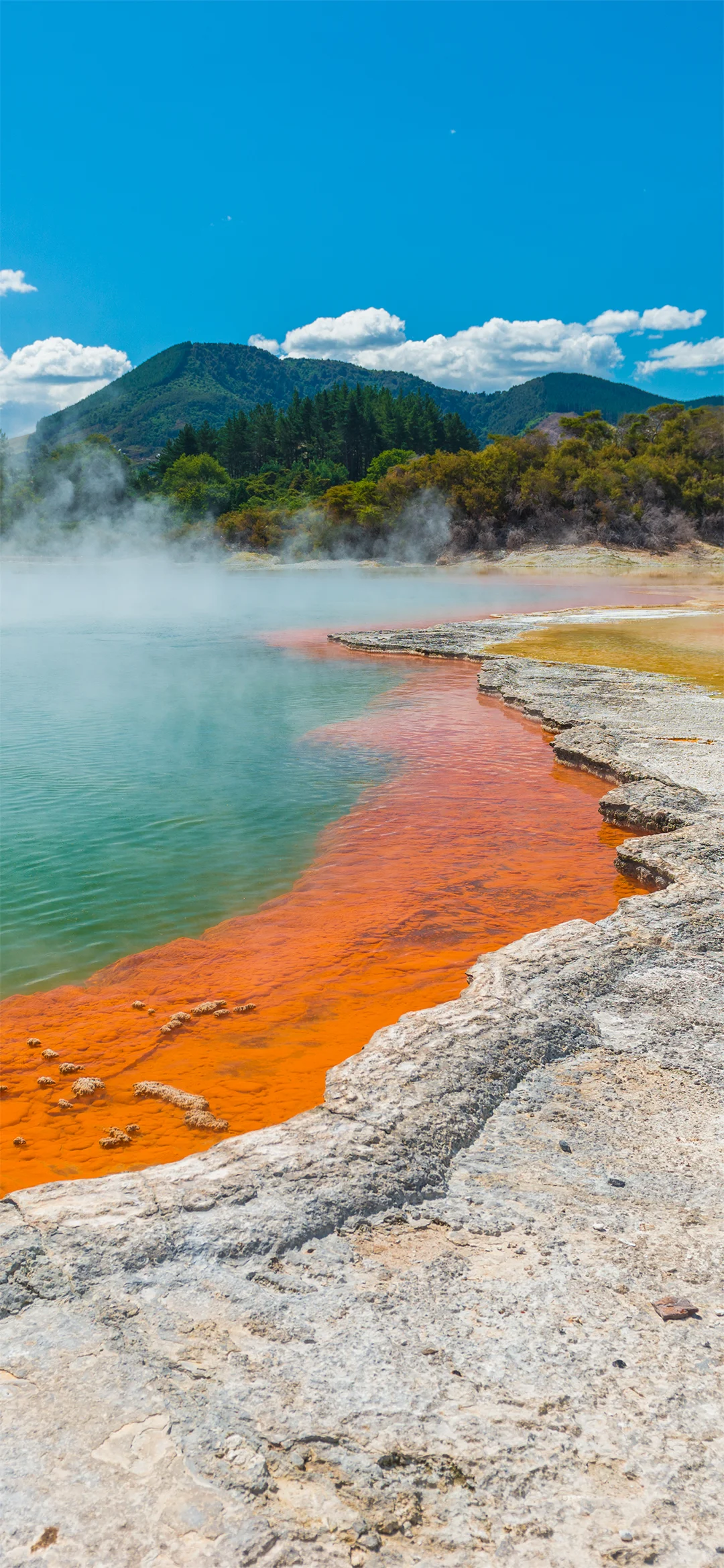 Derefter går rejsen videre til Wai-O-Tapu, hvor naturens kræfter har skabt et farverigt og fascinerende geotermisk landskab. Du ser bl.a. Champagne Pool, kratersøer og svovldamp, der stiger op fra jorden. Det er som at være på en anden planet, og ja, det lugter lidt af svovl, men det hører med til oplevelsen.