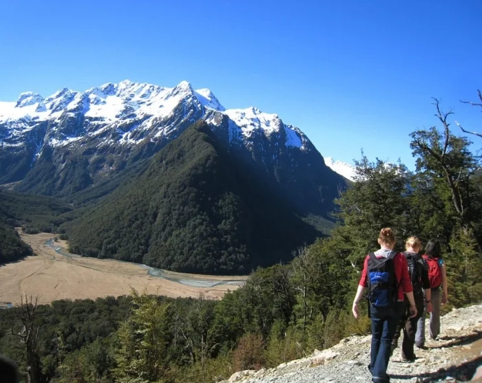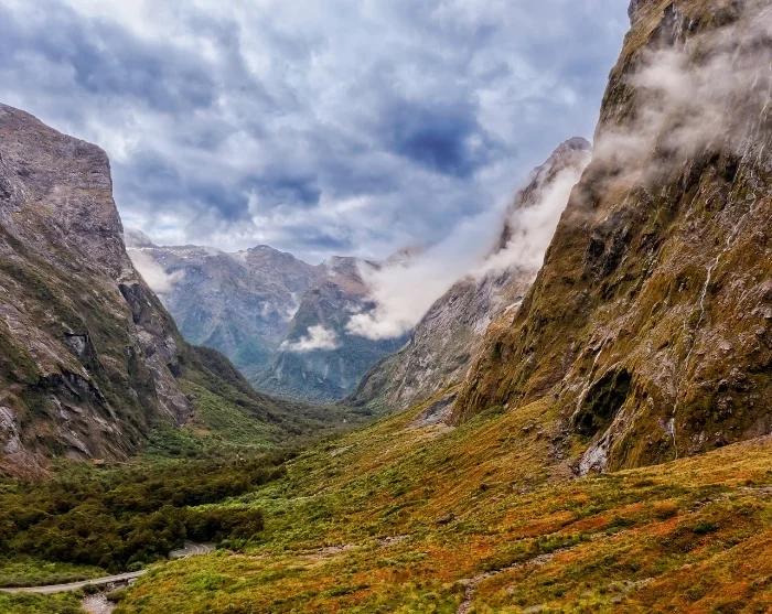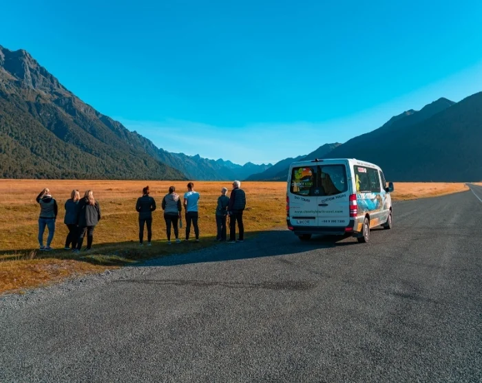 Fra Queenstown følger du bredden af smukke Lake Wakatipu og fortsætter gennem det dramatiske landskab ved Devil’s Staircase. Ruten går via den fredelige by Te Anau og videre ind i Fiordland Nationalpark, hvor landskabet ændrer karakter. Her venter både brede gletsjerdale som Eglinton Valley, de spejlblanke Mirror Lakes, dybe floddale som Hollyford River og tæt skov. Undervejs bliver der rig mulighed for at stoppe og tage billeder af de mange flotte udsigter.