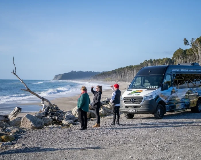 • Sightseeing-transfer mellem Franz Josef – Christchurch bl.a. med besøg i Hokitika