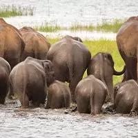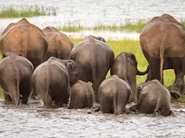 Fra maj-september (den tørre sæson) kan du nemlig opleve ”the Elephant Gathering”, hvor elefanterne kommer langvejs fra for at få vand i nationalparkens store sø. I nogle perioder samles flere hundrede elefanter her.