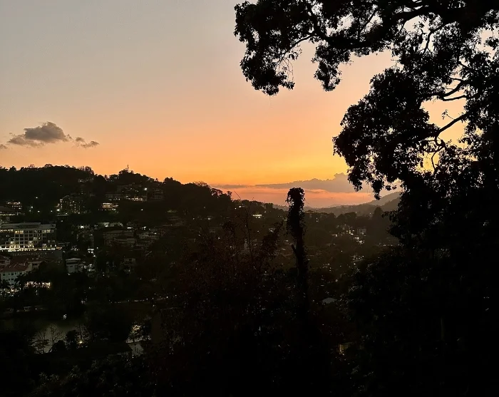 Når mørket falder på, kan du finde dig til rette på en af byens restauranter oppe på bakkeskråningerne med udsigt over dalen og de omgivende bjerge. Her kan du nyde dit aftensmåltid til synet af Kandy, der bader sig i det smukke aftenlys.