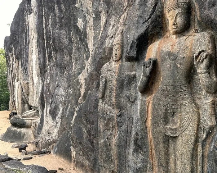 Herefter køres du til Buduruwagala-templet, der har sin oprindelse helt tilbage fra det 10. århundrede og er kendt for sine velbevarede klippeudskæringer. Templet består af en større klippeside, hvor en 16 meter høj Buddha-statue rejser sig omgivet af seks mindre figurer, der viser Buddha i forskellige meditationsstillinger. Deres detaljerigdom og fredfyldte udtryk kan du opleve i ro og mag, da Buduruwagala lever en mere stille tilværelse end mange af Sri Lankas mere kendte templer.