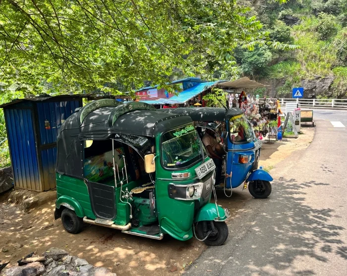 Første stop er Ravana Falls, et af Sri Lankas bredeste og mest imponerende vandfald. Her kaster vandet sig 25 meter ned gennem klipperne, og det bruser så kraftigt, at I næsten kan mærke sprøjtet i luften. Ifølge sagnet boede dæmonkongen Ravana her og holdt prinsesse Sitha skjult i en grotte bag vandfaldet, en historie, der vækker fantasien til live, mens I står og ser på de brusende kaskader.