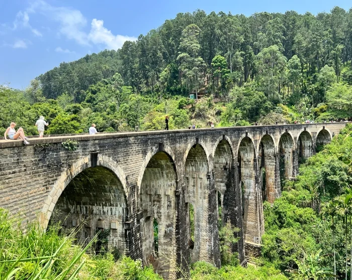 Turen ned går ad samme vej gennem de frodige omgivelser, inden du sætter dig i bilen for at blive kørt mod Sri Lankas måske mest fotograferede vartegn: den smukke Nine Arch Bridge, der blev til under den britiske kolonitid uden brug af hverken jern eller stål.