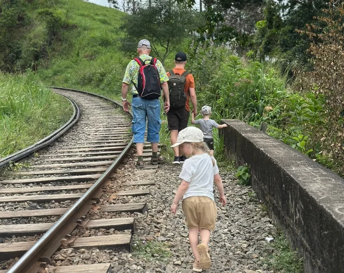Langs broens skinner kan du være heldig at få selskab af små firben og farverige fugle, og hvis timingen er rigtig, kan du opleve et tog passere hen over broen i et magisk øjeblik, der forener broens arkitektur, det frodige landskab og Sri Lankas ikoniske tog. Et øjeblik, der helt sikkert bliver et af familiens rejseminder.