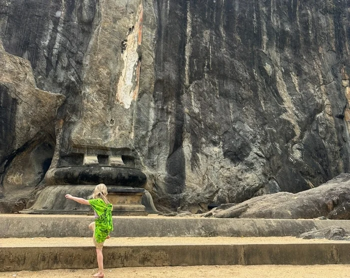 Herefter går turen videre til Buduruwagala-templet, der stammer helt tilbage fra det 10. århundrede. Templet gemmer sig stille og fredfyldt midt i naturen og er kendt for sine imponerende klippeudskæringer. Den 16 meter høje Buddha-statue rejser sig majestætisk omgivet af seks mindre figurer, og hvis I ser godt efter, kan I stadig ane spor af de farver, de engang var malet med. Det er et fascinerende sted, hvor I kan mærke historiens vingesus.