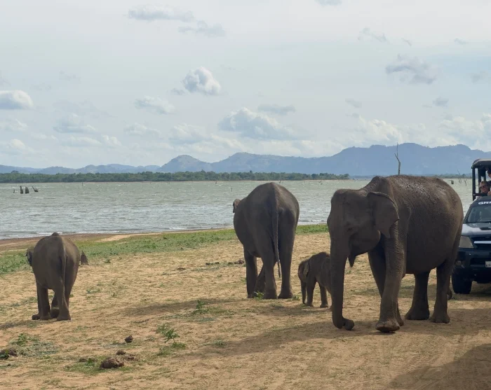 Udawalawe er særligt kendt for sin store bestand af vilde elefanter, og chancen for at se dem er stor. Måske oplever I en elefantfamilie krydse stien foran jer, hvor de store bevæger sig roligt frem, mens ungerne nysgerrigt følger med i slipstrømmen. Det er et øjeblik, der sætter sig fast hos både store og små.