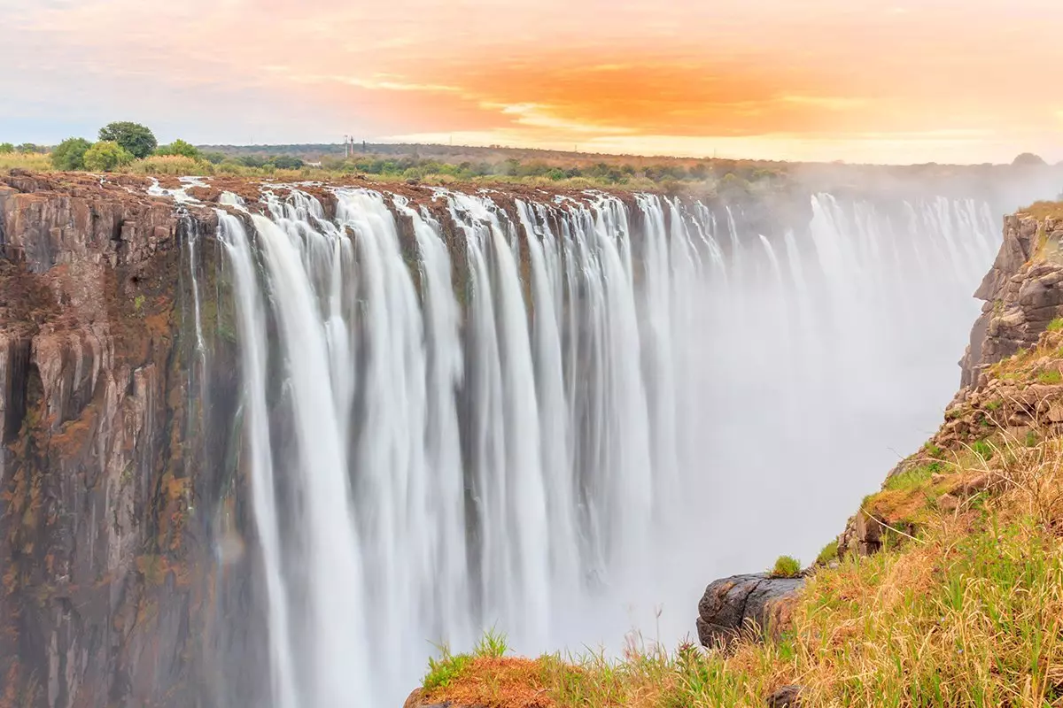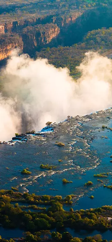 Sidste stop på din Afrika-rejse er de mægtige Victoria Falls på grænsen mellem Zambia og Zimbabwe.