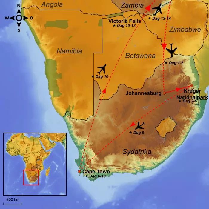 Ved ankomsten til Johannesburg bliver du modtaget i lufthavnen og kørt til din camp ved Kruger Nationalpark for de næste fire nætter. Parken strækker sig 350 km fra syd til nord og ca. 65 km fra øst til vest og dermed er en af verdens største nationalparker.