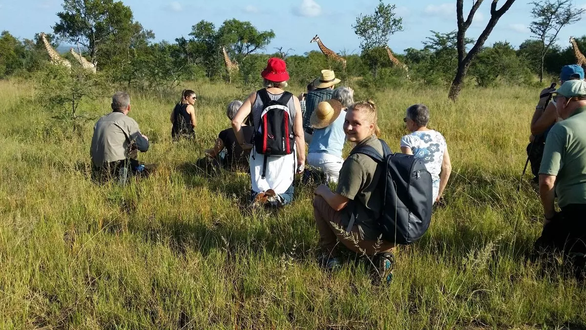 Der er afgang fra hotellet tidligt om morgenen. Du bliver kørt til et område af Kruger National Park, hvor en spændende bushwalk venter. Guiden er særligt uddannet til bush walks. Han lærer dig at afkode naturens signaler ved at dufte, lytte, spejde og iagttage som en rigtig stifinder. Du hører om dyrenes adfærd og hvordan du identificerer dem på deres spor. På turen hører og lærer du om mange af de små dyr og planter, som du ikke når at se, når du kører i safaribilerne.