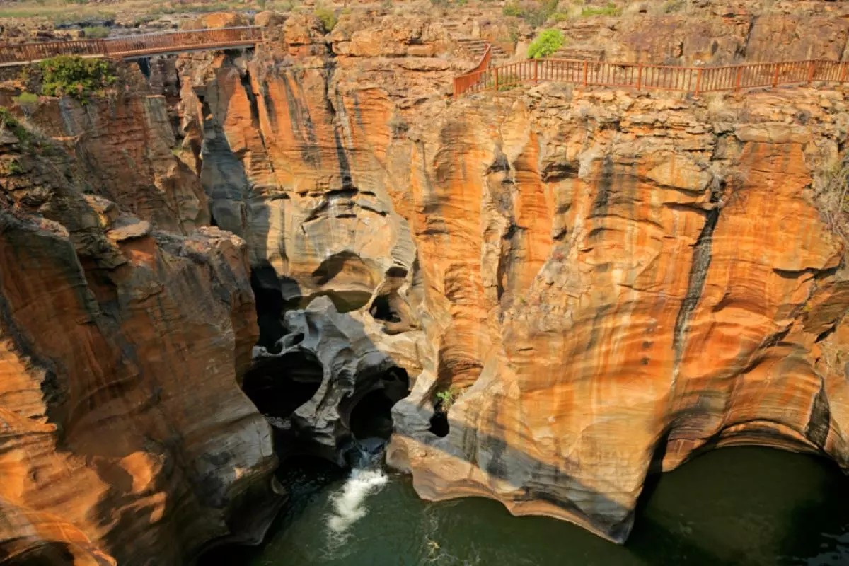 I dag skal du på en meget scenisk heldagstur langs Panoramaruten i de dramatiske Drakensbjerge. Drakensbjergene er røde og danner en fantastisk kontrast til de grønne træer og planter. Du oplever Blyde River Canyon, der er op mod 700 m dyb og 60 km lang og dermed er verdens tredje største canyon. Du gør stop ved de tre vigtigste udsigtspunkter langs kløften; God’s Window, Bourke’s Luck Potholes og De Tre Rondaveller. De Tre Rondaveller er 3 meget smukke og markante klippeformationer, der i udseende minder om de runde hytter, som tidligere fandt i lokale landsbyer mange steder i det sydlige Afrika. Der er også mange vandfald på Panomararuten, og du gør gør stop ved et af dem. Det kan være Berlin Falls, hvor vandet falder 150 meter ned i en sø. Eller måske er stoppet ved Lisbon Falls, der ligger hvor Blyde River deler sig i to og derefter falder 92 m ned over en næsten lodret klippe og igen samles til et løb. Der er mange andre vandfald, og guiden afgør hvor stoppet bliver. Et af dagens mest spektakulære besøg vil klart være Bourke’s Luck Potholes, der er cylindriske huller slidt ned i klipperne af vand og sand gennem tusindvis af år. Du kan komme helt tæt på dette naturfænomen langs nogle broer, der er bygget hen over de særegne huller.