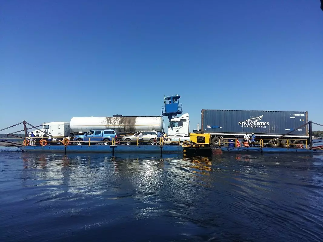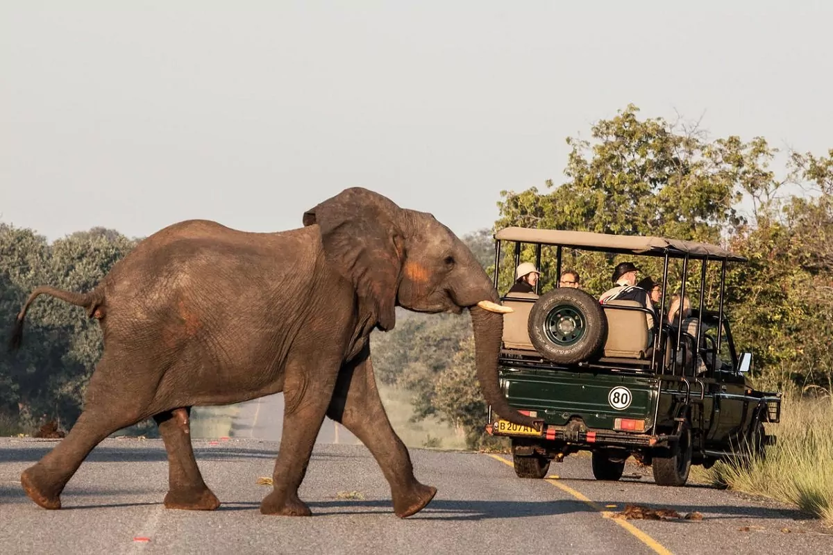 Du bliver hentet på hotellet, og køreturen mod Botswana begynder. Turen tager ca. 2-4 timer – lidt afhængig af ventetiden ved grænseovergangen i Kazungula. Kazungula er en lille landsby, som ligger lige ved bredden af Zambezi-floden, og her mødes ikke mindre end 4 forskellige lande; Zambia, Zimbabwe, Botswana og Namibia. En bro forbinder Zambia og Botswana. En sjov lille detalje er, at broen buer, som den gør, for ikke at komme i karambolage med grænserne mod hhv. Namibia og Zimbabwe.
