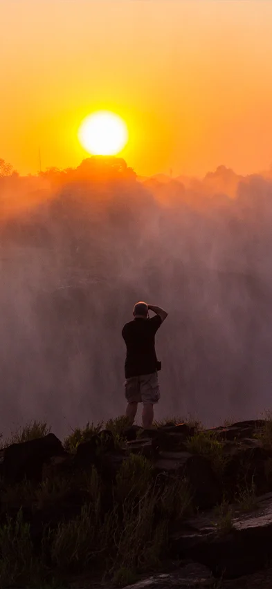 Allerede fra luften kan du være heldig at få det første glimt af et af verdens største vandfald. Det ligner nok mest en sky, der rejser sig op fra jorden, og det er ikke helt forkert; vandsprøjtene fra vandfaldene rejser sig ofte flere hundrede meter op i luften. Der bliver rigelig mulighed for at udforske området omkring Victoria Falls, inden turen går videre til Botswana.