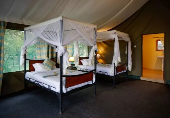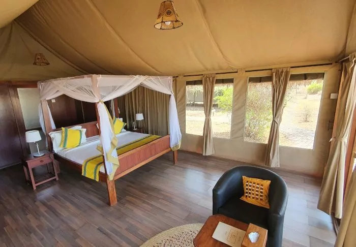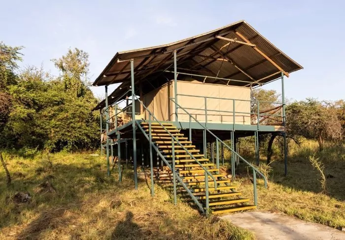 Campen er en klassisk afrikansk safaricamp med rustikke og komfortable kanvastelte. Naturen er lige udenfor døren. Det er ikke ualmindeligt, at der kommer vilde dyr gennem lejren om natten, og du kan forvente at se både gazeller, antiloper, zebraer og til tider elefanter og hyæner omkring campen.