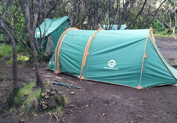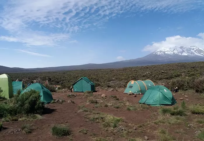 På vandreturen til toppen af Kilimanjaro overnatter du i telt i forskellige lejre. Du sover på tynde liggeunderlag i 2-mands telte.