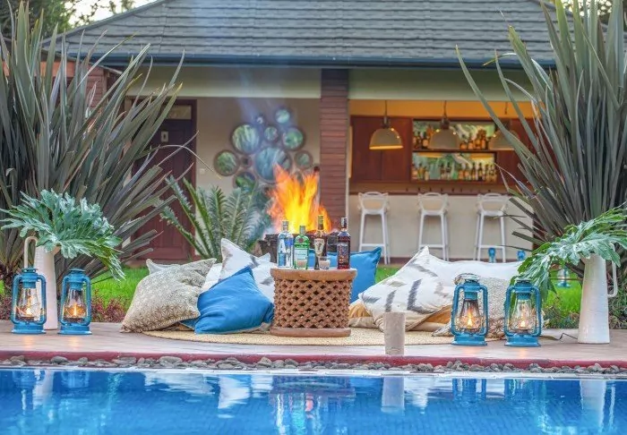 Om aftenen bliver der ofte tændt bål i haven og over en drink inden middagen, kan du udveksle rejsehistorier med de andre gæster.