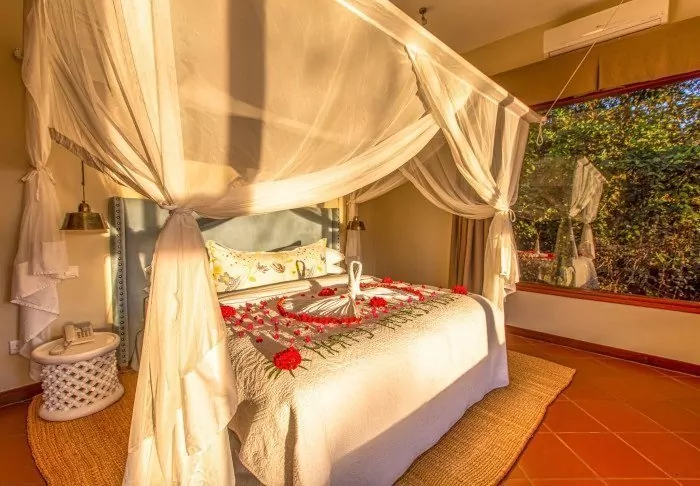 Her er 32 værelser fordelt på 16 ”hytter”. Alle værelser har egen stor veranda eller terrasse og alle har aircondition, minibar, te- og kaffefaciliteter, TV, værdiboks samt Wi-Fi. Værelserne er meget store og er alle moderne indrettet med et strejf af romantik og store vinduer, som lader lyset udefra fylde rummet.