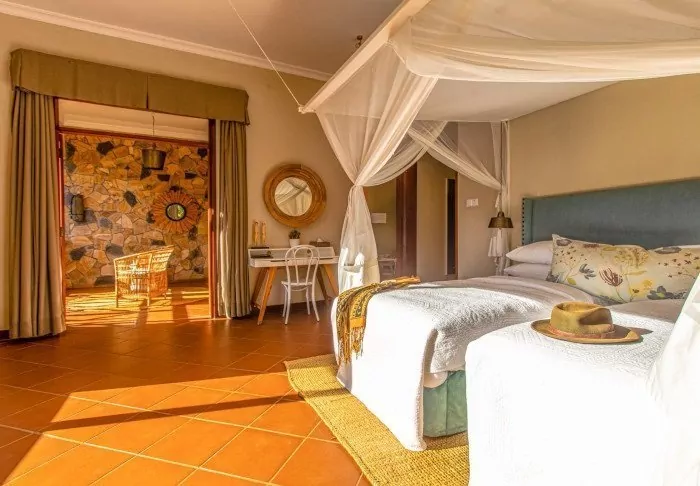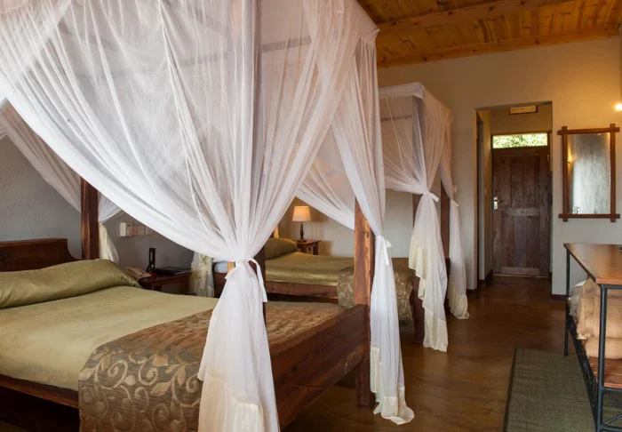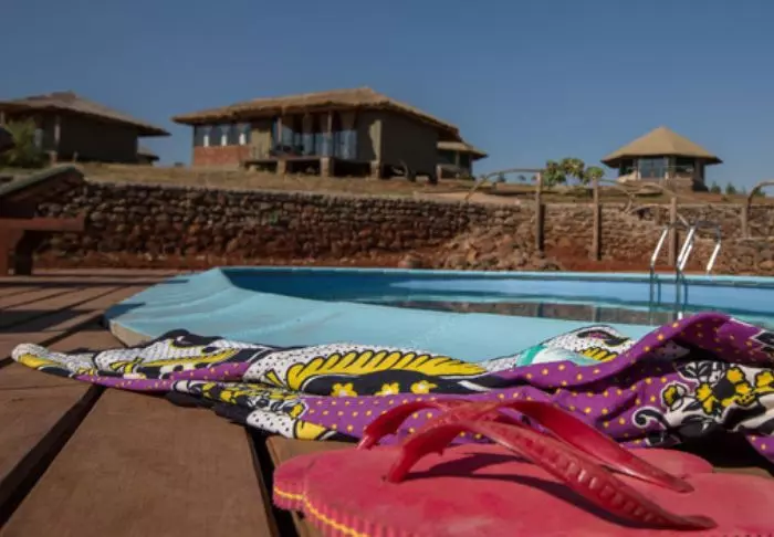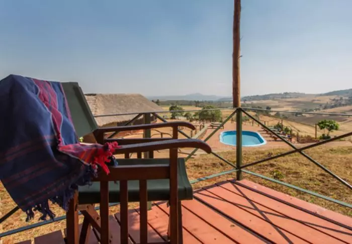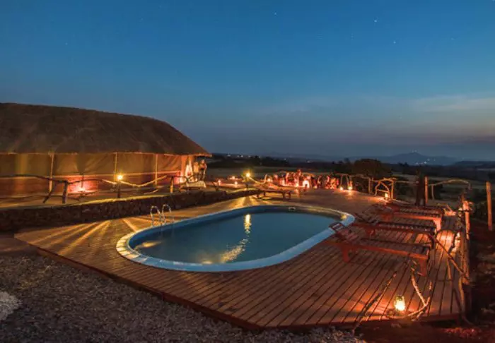 Nyd et kølende dyb i den lille pool efter endt safari – og en drink omkring lejrbålet om aftenen. Glæd dig til middagen: maden kommer fra markerne omkring lodgen, og kaffen er naturligvis lokal!