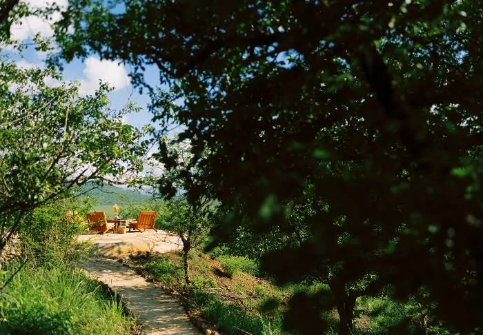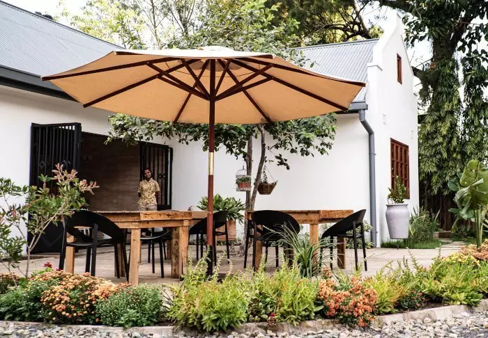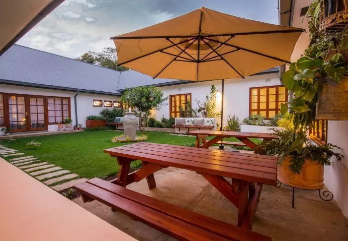 I den hyggelige og frodige have finder du lodgens pool, hvor du kan slappe af under en parasol eller nyde solens varme stråler. Reserver tid til en massage og glæd dig til middagen i aften. Farmen har sin egen køkkenhave, og langt de fleste råvarer, der bliver brugt i køkkenet, kommer herfra. Du er naturligvis velkommen til at gå en tur i køkkenhaven, hvis du har lyst!