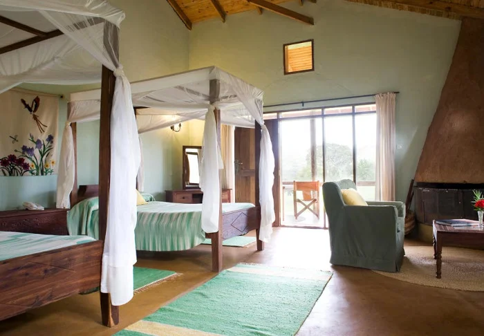 Alle hytterne er charmerende dekoreret i masai-stil med fine, farvestrålende, håndlavede perler hængende ned fra loftet, smukke kurve på væggene og sengetæpper i de skønneste masaifarver. Hytterne findes i forskellige størrelser, og her er både plads til parret, som vil have deres egen hytte eller til familien, som gerne vil sove i samme hytte. Alle hytterne vender, så du tidligt om morgenen kan nyde solopgangen over Kilimanjaro.