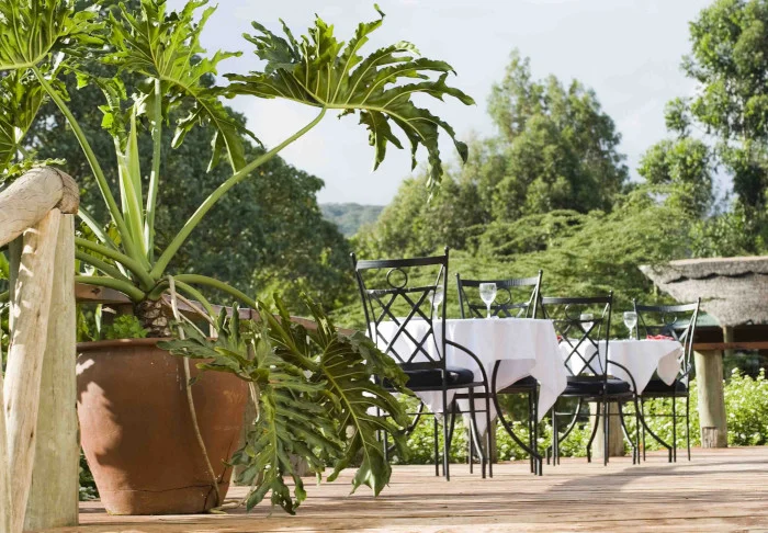 Fællesområderne byder på en hyggelig restaurant med udsigt til Kilimanjaro og en skøn pool med liggestole, hvor du kan ligge i både sol og skygge, mens du nyder udsigten til Afrikas højeste bjerg. Maden i restauranten er økologisk, og næsten alle ingredienser dyrkes i nærområdet.