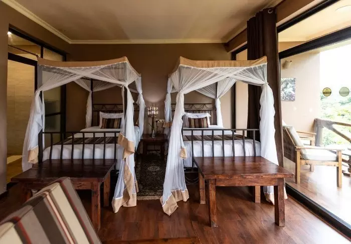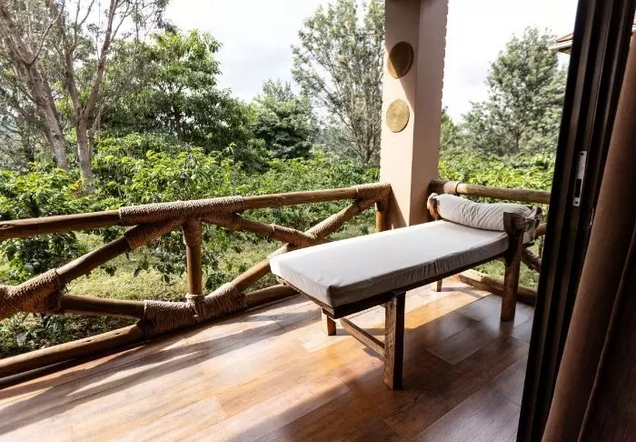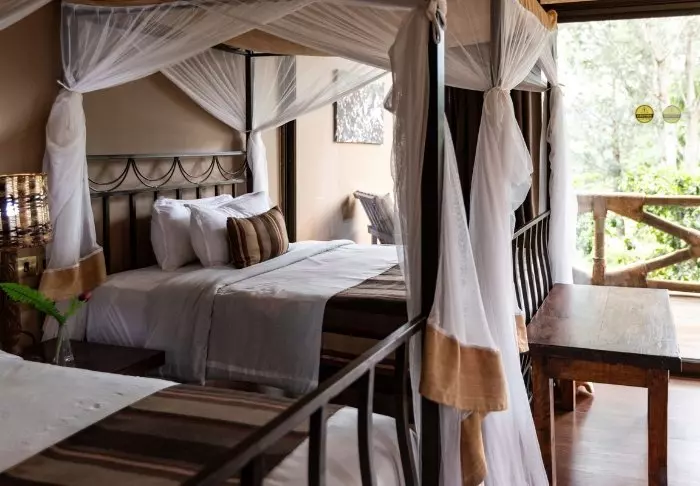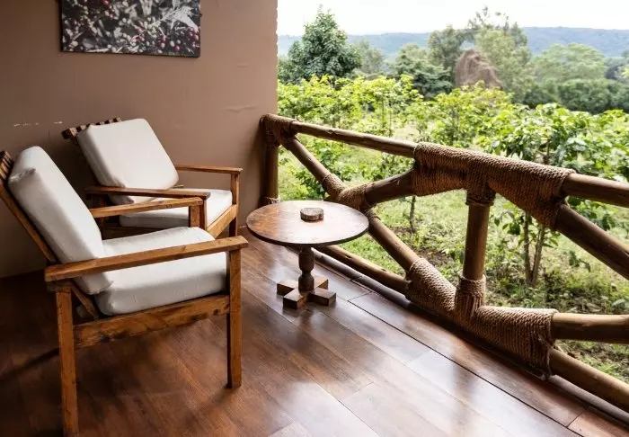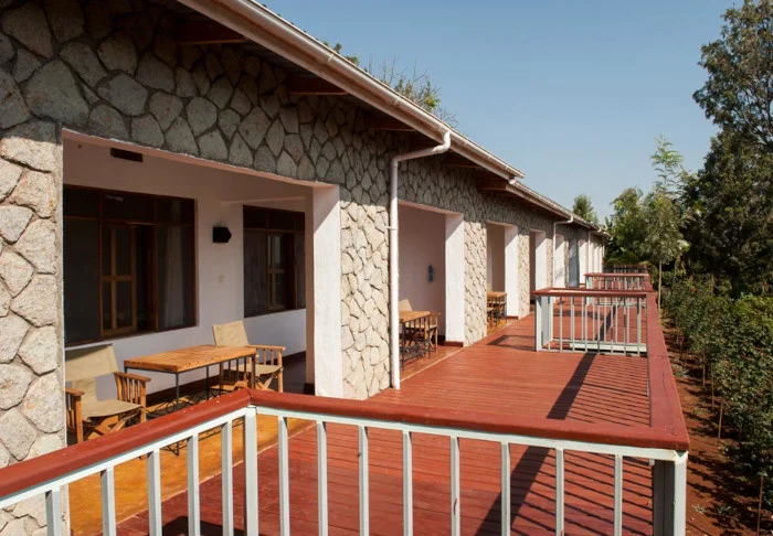 Her er 41 værelser, som alle har veranda med udsigt til en frodig dal med kaffeplantager, som elefanterne elsker at rasere. Hotellet har også sin egen kaffeplantage, og kaffen kan både nydes på hotellet og købes med hjem. Hotellet har desuden egen økologisk frugt-og grønsagshave.