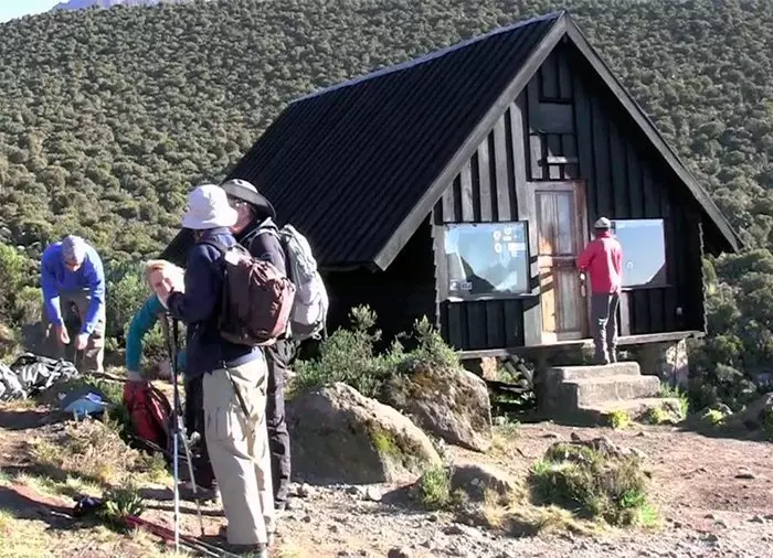Bemærk at forholdene i disse hytter er meget primitive. Der er rindende vand ved Mandara huts og Horombo huts, men ikke ved Kibo huts.