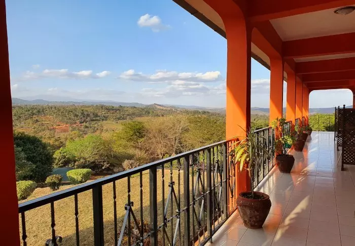 Ejendommen var oprindeligt en kaffefarm, og de 38 værelser i forskellig størrelse ligger spredt i forskellige bygninger på den store naturgrund. I den store, grønne have pipper fuglene lystigt i træerne og bagerst i haven risler floden, USA. Her er charme, hygge og en fredfyldt atmosfære. Det er også her i haven, du finder poolen, og små kroge, hvor man kan nyde en god bog og en god kop kaffe.