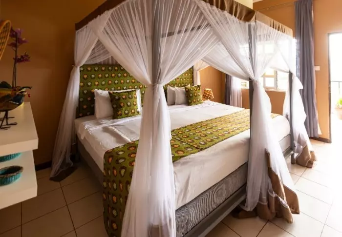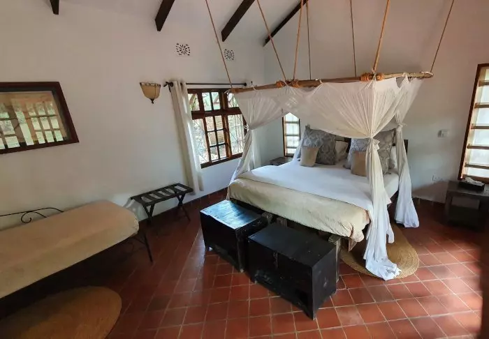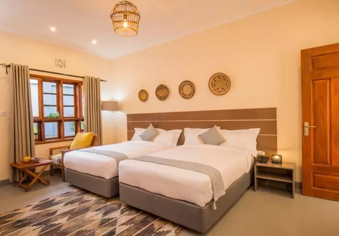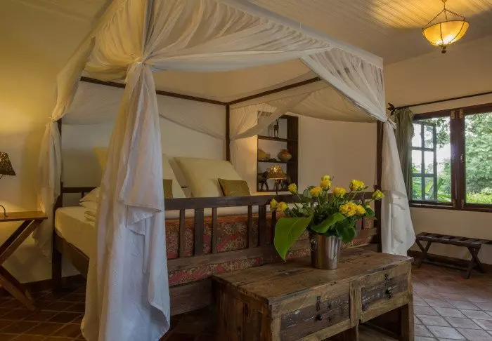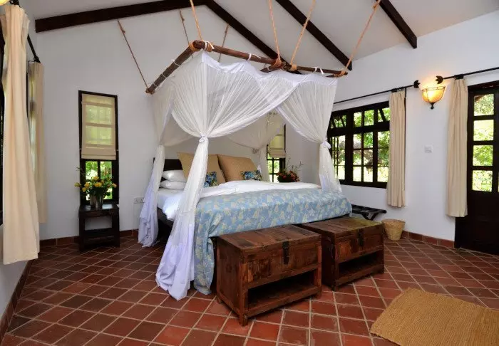 Dette er en lille eksklusiv lodge med blot 24 hytter i charmerende kolonistil samt 12 værelser i hovedbygningen med terrasse eller balkon, som alle er placeret ud mod haven. Alle værelser har badeværelse med brusekabine og er derudover udstyret med ventilator, te/kaffe bakke, myggenet og så er der også mulighed for room service.