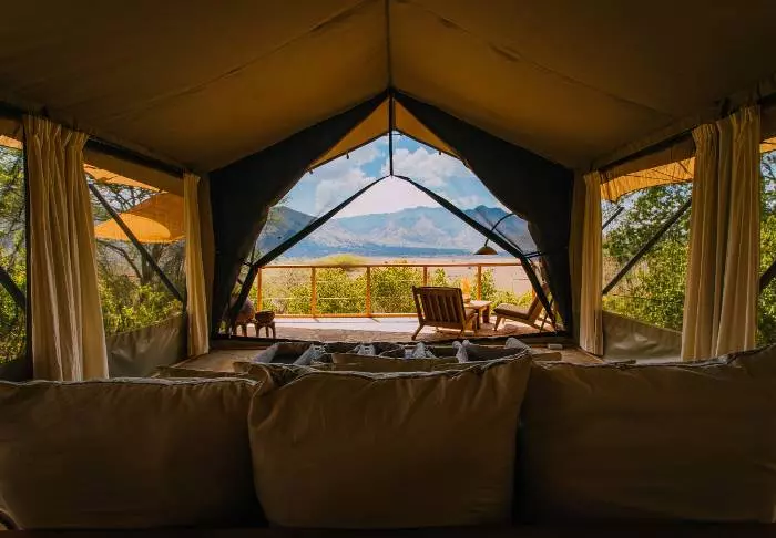Lodgen består af 10 luksustelte, der er bygget op omkring en stålskal med kanvasvægge, højt til loftet og murede badeværelser i forlængelse af selve værelset. Alle 10 luksustelte er bygget på hver sin individuelle platform med en stor træterrasse, hvorfra du har den flotteste udsigt til saltvandssøen, Lake Eyasi.