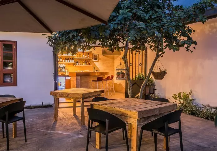 Restauranten er delvis åben med udsigt til haven – og stedets pizzaovn er populær blandt alle. Restauranten er åben for udefrakommende gæster, og det skaber en både livlig og hyggelig atmostfære.